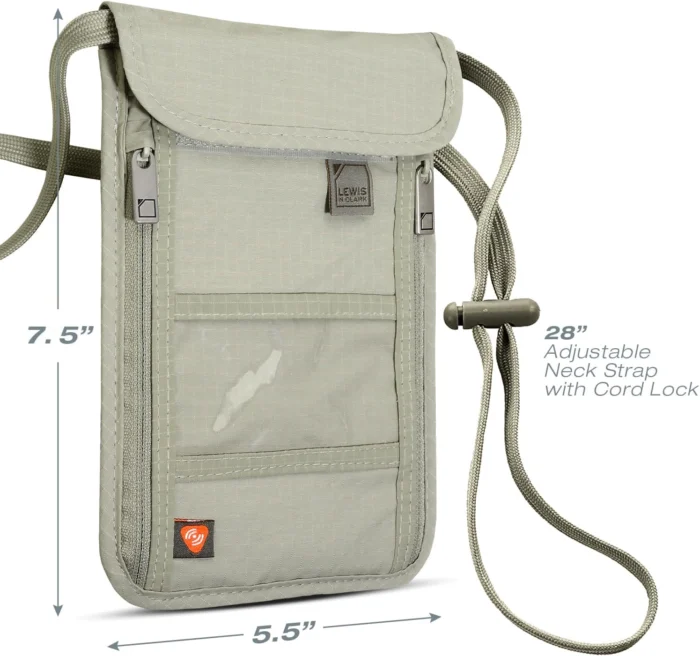 Reviewer: Margaret Farnum Rating: 5.0 out of 5 stars Title: Perfect for Travel Review: I took it with me to Las Vegas because I was worried about someone taking my things when I wasn’t paying attention with all the excitement. It was perfect just for the bare necessities and I always knew it was close to my chest so I always felt comfortable that my money and credit cards were safe. I never use that clear front pocket. I don’t know what that is all about, but it doesn’t even have a snap to hold anything? that would be my only complaint. nothing important should go in the front clear pocket especially your ID. You can see in that photo. I have it around my neck and that’s where it stayed. The whole vacation and I was very comfortable and felt safe. Reviewer: wutanglen Rating: 5.0 out of 5 stars Title: Worked great during my 3 week trip Review: Use this everyday on my trip to Asia. Kept my passport, money and all important information. Very well made. Handy. No issue with the hot weather. Kept everything safe and out of site. Great product. Very well designed and made it easy to keep organized and my stuff safe while travelling. Reviewer: A Frequent Shopper Rating: 4.0 out of 5 stars Title: Comfortable, efficient and practical for stowing travel documents or currency Review: This Lewis N. Clark RFID Blocking Stash Wallet, Travel Neck Pouch Passport Holder is a very nice addition to my travel gear. Its much softer than the pictures show and can be worn comfortably on the skin under a shirt. Its an excellent and secure way to handle my documents or currency and reserve my pockets for other items less attractive to thieves.I’m not wild about the cord length as the excess hangs down my back. Now I know how it feels to have a pony tail. Perhaps adding a second drawstring clip to both sides of the cord (like a surgeon knot) will be a better way to stash the excess.I would have preferred a slightly larger size of the wallet pockets to fit airline boarding passes.A better solution for holding, displaying and removing standard sized passports would have more desirable too.As it is, there are pockets for stashing needed items while traveling and RFID protection adds peace of mind. I like this wallet very much and look forward to using it on an upcoming international trip. This wallet makes it possible to keep required documents and currencies organized in 1 place while in transit. Reviewer: Lynn Rating: 5.0 out of 5 stars Title: Best Choice Over Other Brands Tested Review: I didn’t end up using this item on my trip because my handbag with locking zippers was sufficient. However I ordered this one and one from Travelon and ended up keeping this one because it was a softer material and lighter weight. I tried it on under a tshirt and cami and it was hardly noticeable Reviewer: Terry in SA Rating: 5.0 out of 5 stars Title: Brilliant for international travel Review: I bought two each of the black and the tan Lewis N. Clark Neck Stash for a recent trip to Greece with my daughter. I had been warned that in Athens, it’s advisable to keep your money/passport/credit cards inside of your clothing if possible. I looked at all sorts of items like belts with hidden zippers, but finally decided this looked most convenient for keeping our hands free and would work with dresses as well as jeans and tops.These performed much better than I’d hoped for! It easily held my passport, credit cards, and cash. I could hang it on the inside of my clothing but it was easy to pull it out via the adjustable neck cord. It worked brilliantly in the airport, where we were dragging and carrying out bags from one terminal to the next, but needed to show our passports at different places. No fumbling around in over-packed bags! Everything I needed was around my neck.I was also relieved that the Neck Stash is RFID blocking so I had no worries about my personal info being stolen.So the top pocket closes with velcro and it’s the largest pocket. There is a mesh divider in this pocket so effectively, it is two pockets. This is perfect for passports and small papers and documents. There are two zippered pockets on either side of the Neck Stash, which is where I kept my money and credit cards. One pocket I kept Euros in – the other held credit cards. Finally, there is a clear window pocket in front for a photo ID. I used that my hotel room key.The entire thing is made of very soft and lightweight fabric so it’s comfortable against your body. It was so convenient, I wore it everywhere instead of a purse. The neck strap is so long, you can wear it cross body but it adjusts easily to whatever length you need.My daughter loved them as much as I did and she is still using hers for business now that we’re back. She regularly presents at conferences and must carry a number of items with her. Finding a safe place to put her purse was always a problem. She said this Neck Stash works perfectly instead of a purse at conferences and the front window displays her conference badge so it doesn’t look odd or out of place.If you’re going on a trip, get at least one. It makes traveling much easier. Reviewer: glenn watters Rating: 3.0 out of 5 stars Title: Secure travel accessory! Review: Blocking Stash Neck Wallet is a must-have for secure travel. Its RFID-blocking feature effectively protects against electronic theft, while the slim design and adjustable strap offer comfort and convenience. With multiple compartments, it keeps essentials organized and easily accessible. Highly recommended for peace of mind on the go! Reviewer: Nancy Rating: 5.0 out of 5 stars Title: Well made, compact, adequate Review: Adjustable neck strap. Tucks in under shirt nicely. Holds plane ticket, phone, passport ID, money, credit cards. Couldn’t tell I was wearing it. At the Airport, I had to remove it and let it pass through the machine with my purse. Reviewer: Amazon Customer Rating: 5.0 out of 5 stars Title: Safety first! Review: Convenient. Essent