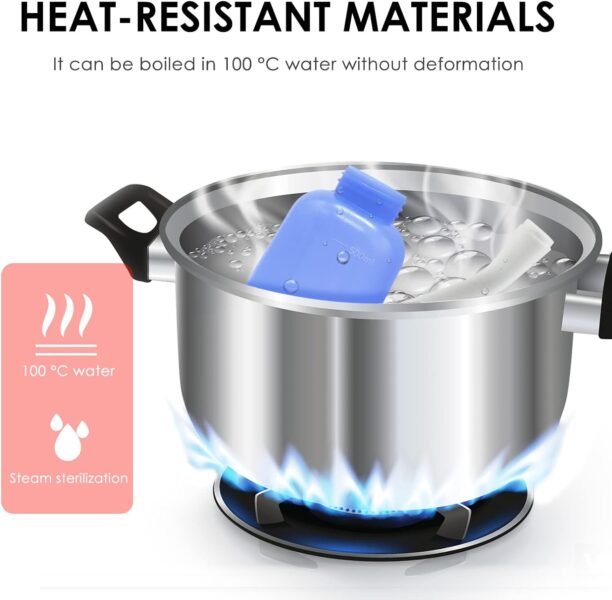 HIGH TEMPERATURE RESISTANCE: The bottle body is made of TPE material, a soft, flexible material which has the properties and performance of rubber. It can be boiled in 100℃ (212℉) water for disinfection without being deformed by heat. TPE meterial is greener and eco-friendly than EVA and can be processed like plastic and recyclable.