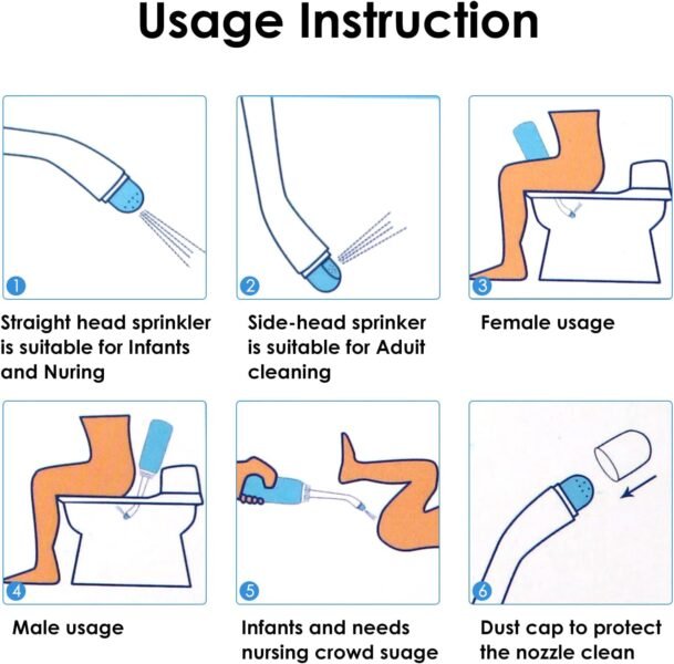 This bidet is intended for external use onlyClean reservoir and nozzle assembly on a regular basis to avoid harmful bacteriaFor proper cleaning use the bidet spray in a circular motionThis product can not be stored or carried with water.It is recommended to refill the water when it is used.And the remaining water should be drained.