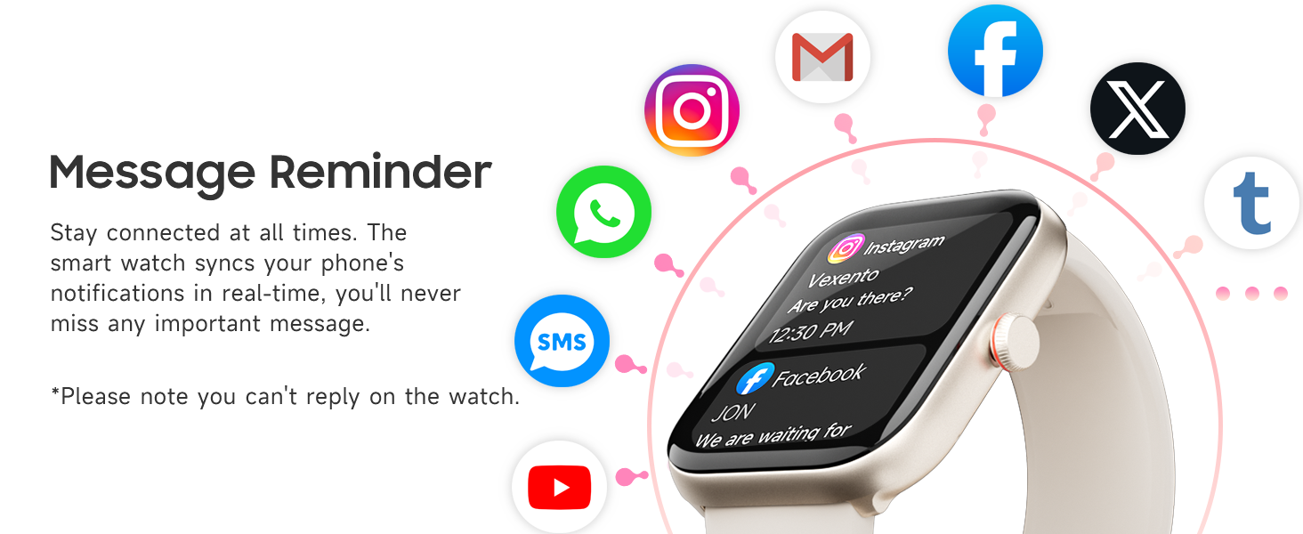 Phone Extension and Built-in Alexa: Keep your life at your fingertips with our smart watch for women. Answer and make calls directly from your wrist and stay in the loop with notifications for messages, emails, and social media, please note you can’t reply. Alexa allows you to control smart home devices, set alarms effortlessly and more, all with just your voice.