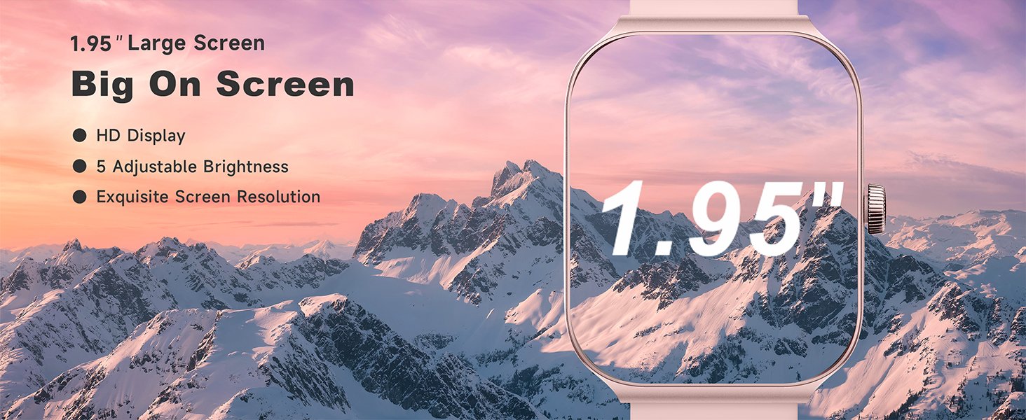 [1.95” HD Screen & Customizable Watch Face] Experience crystal-clear visuals like never before with our smartwatch’s 1.95-inch high definition screen. Choose from 100 beautiful cloud-based watch faces or even upload your own photos, such as selfies or pictures of your pets, to create a truly personalized look. With endless possibilities, you’ll never run out of options to make your watch truly your own. %$#