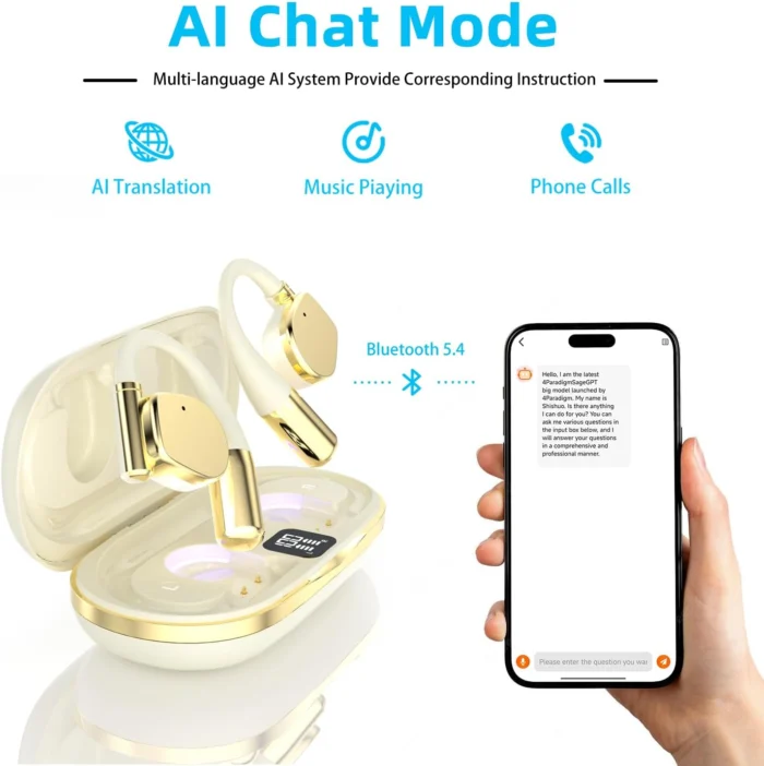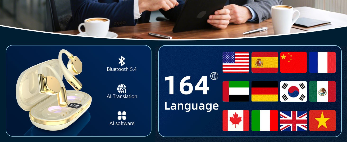 AI Translation Earbuds Real Time 164 Languages Translator Earbud 3 in-1 Bluetooth 5.4 Audifonos Traductores Inglés Español Translating Device iOS & Android Compatible(White)