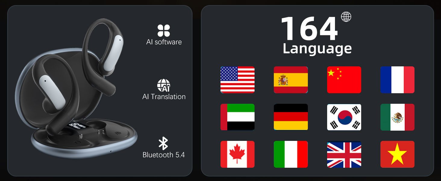 🍟【High-Precision Multilingual Translation Support】 This translator earbuds support real-time two-way AI translation for 164 languages and accents—covering Spanish, English, Chinese, Japanese, Korean, Russian, German, French, Italian, and more—to effortlessly meet your global communication needs.It also includes advanced features like AI Assistant, AI Chat, making it a versatile device for work and daily use.