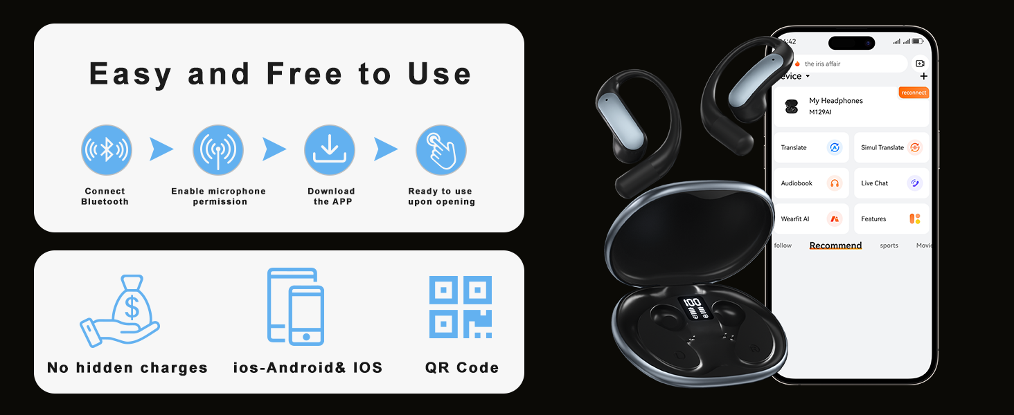 🍟【Bluetooth 5.4 Technology】This bluetooth translator earbuds features bluetooth 5.4 for ultra-fast, stable connections. Whether you’re using call/video translation, streaming music, watching movies, or taking calls, enjoy seamless audio in any environment. After initial pairing, simply open the charging case to reconnect—no manual setup needed. Experience effortless, high-performance audio wherever you go.