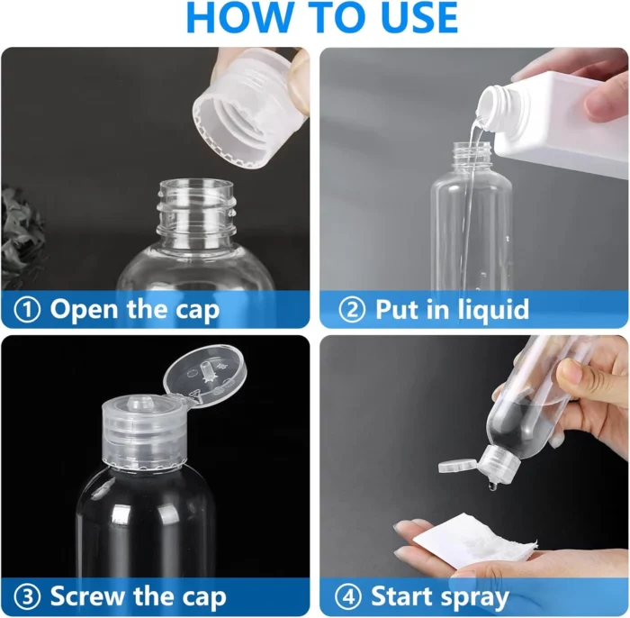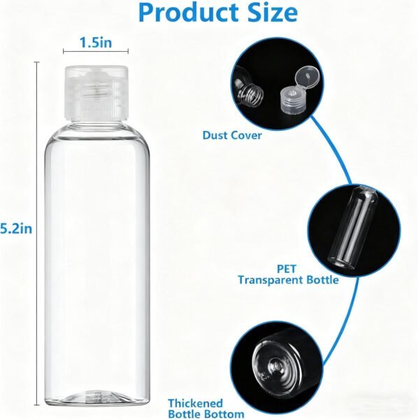 4 Pack 3.4 Oz (100ml) TSA Approved Travel Bottles for Toiletries, Leak Proof Plastic Travel Essentials Accessories with Labels | 4 Pack, TSA Approved, for Toiletries, Leak Proof, with Labels