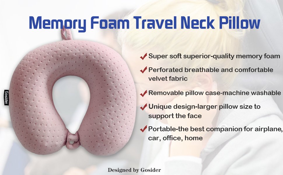 Neck Pillows for Sleeping Travel Pink Travel Pillow Comfortable U Shape Memory Foam Pillows Neck and Head Support Portable Travel Neck Pillow Suitable for Planes, Trains, Self-Driving Cars