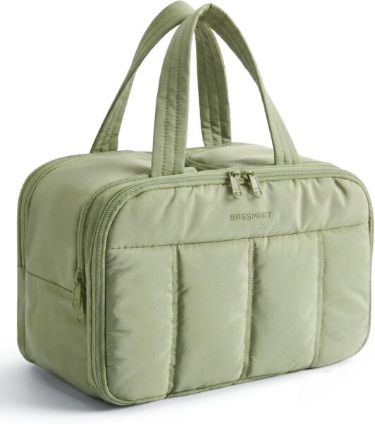 BAGSMART Travel Toiletry Bag, Puffy Large Toiletry Bag for Women, Lightweight Cosmetic Makeup Bag Organizer with Handle for Traveling, Accessories, Essentials, Toiletries (Green)