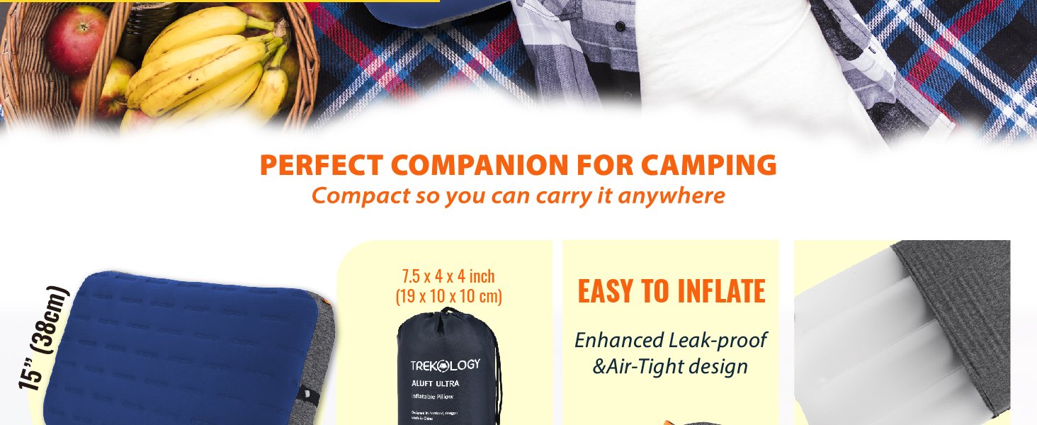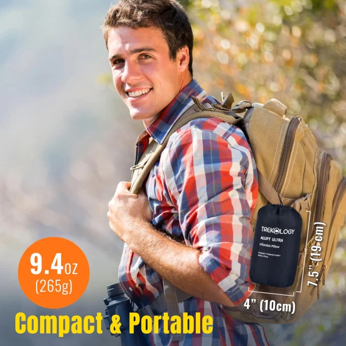 TREKOLOGY Camping Pillow – Large Inflatable (24″x15″) for Home-Like Comfort, Portable & Ergonomic, Easy to Clean, Durable & Leak-Proof, Removable Strap for Secure Fit – ALUFT Ultra (Blue)