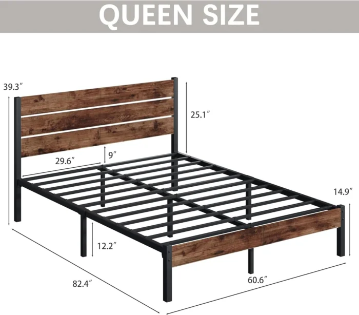 @#@ Queen Bed with Headboard and Footboard, with Under Bed Storage, All-Metal Support System, No Box Spring Needed, Easy Assembly,Retro Brown @@@