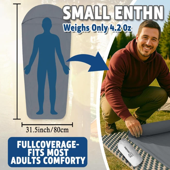 4.2oz Ultralight Sleeping Bag Liner – No Zipper Portable Travel Sheet, Quick-Dry & Machine Washable,Ideal for Camping, Hotels, Backpacking,Hostels