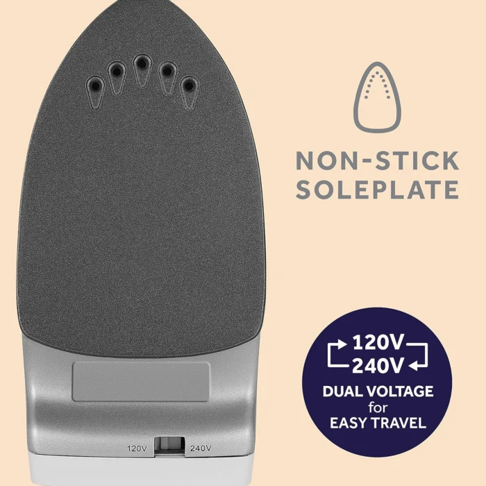 Reviewer: S.A Rating: 5.0 out of 5 stars Title: Perfect for travel Review: This travel clothes iron has fully met my expectations. It’s compact, lightweight, and heats up quickly, making it perfect for keeping my clothes wrinkle-free while traveling. Very practical and effective. Reviewer: K R Rating: 5.0 out of 5 stars Title: Lovely little iron! Pefect for sewing at your desk. Review: If you hate ironing, I still recommend you at least give it a try with sewing, it helps SOOOOO much and will change your mind about it. Having a very cute little iron like this also helps.I don’t have a dedicated sewing area or even table. I use my desk with my computer, so space is a premium. I had been using my house iron, the standard size, which worked, but was heavy and took up a lot of space. Also awkward with small bits.If you don’t want to buy distilled water and store it just for the iron, just get a little spray bottle and keep with your iron to spray the fabric (or buy the spray heads and put on an empty isoproply alcohol/hydrogen peroxide bottle. The equate brand is the standard screw type and fits the heads you can buy here)After looking at lists and reddit posts, I went with this little guy.So cute, fits nicely in my IKEA cart I use for most of my sewing stuff. Takes up very little space but heats up fast and is great for seams or smoothing out small bits of fabric.I do wish it had a stainless steel foot plate/sole/thingy and auto shut off. (Not a fan of non-stick in general due to PFAS, but I am on a budget so. Compromise.)However, most people like that it doesn’t have an auto shutoff as that can be annoying when quilting. I just like it in case I’m forgetful, but have been diligent to just unplug it when in use.I bought a 4 ft long power-strip from Harbour Freight that spaces out the outlets, and it sits on my desk near the edge. This is very convenient for phone chargers, lights, tea kettle, AND the iron, as I don’t have to bend down or crawl around to unplug it. This also helps keep the cord up so my dogs don’t knock it down.I also have some cable clips that I stuck under my desk to help hold up the cords of my machine and iron. I feel this is a must if you have dogs who like to hang out under your desk, and they only cost a few bucks. I leave my cords for my machines under my desk all the time, and tuck the pedal into a little basket on the side. Convenient and out of the way. Reviewer: Tessa N Rating: 4.0 out of 5 stars Title: Small but mighty! Review: I bought this to iron out some sewing projects and it works great. The only flaw I have noticed so far is that the water reservoir leaks a little bit. It’s not too bad and leaks right near the steaming buttons. While using, it doesn’t create much of a problem but could be a problem if you leave water in it. It doesn’t hold much water, but it’s worth it for the compact size! Plus, I was able to iron all of my quilt squares without refilling. Reviewer: Mums Rating: 5.0 out of 5 stars Title: Really works! Review: Great little iron. I use it next to my sewing machine to press seams when quilting. Get hot enough to do the job and I’ve never had to use the steam function. Reviewer: Everyday Reviews Rating: 5.0 out of 5 stars Title: Compact Iron That Punches Above Its Weight Review: Compact Iron That Punches Above Its WeightThis little Sunbeam travel iron surprised me with how effective it is for such a compact unit. At first glance, it looks like something that would only handle the lightest touch-ups, but in practice it heats quickly, puts out a good amount of steam, and smooths wrinkles in clothes just fine. I’ve used it on shirts, slacks, and even a light cotton dress while traveling, and it got the job done without me having to go over the same spot repeatedly.The dual voltage feature is a big plus if you travel internationally—it means I don’t have to pack a separate converter, just an adapter plug. The size is also perfect for slipping into a carry-on or even a tote bag. The non-stick soleplate glides easily and hasn’t snagged or left marks on fabric.A couple of things to keep in mind: the water reservoir is very small, so if you’re doing a lot of steaming you’ll be refilling often. Also, the handle is on the smaller side—it works for me, but someone with larger hands might find it a bit cramped. It’s not meant to replace a full-sized home iron; it’s for touch-ups, quick presses, and keeping clothes presentable on the road.Bottom line: A handy, well-designed travel iron that performs better than expected for its size. Great for business trips, vacations, or keeping in a dorm room when space is tight. Reviewer: krupa Rating: 1.0 out of 5 stars Title: Review: Got the product after 3 weeks. Didn’t end up using it till 2 weeks later only to find out that the product didnt work. And i missed the deadline of 10 days to return it so they won’t issue me a refund now. Reviewer: Jenny Murray Rating: 5.0 out of 5 stars Title: Review: Fantastic product. Light and works well. Reviewer: Noora Rating: 1.0 out of 5 stars Title: Review: خطا في الصنع حار جدا حتى مع تخفيف الحرارة وتخرج منه رائحة حريق عند التشغيل Reviewer: Bob Vidic Rating: 5.0 out of 5 stars Title: Review: Travelled through Croatia for 2 weeks with the iron and it worked great! Heated up in 10-15 seconds and was ready to use! Nice long electrical chord and it’s extremely lightweight and easy to handle. Small water reservoir to help with steaming cotton or linen! I loved the ability to switch from 120V (North America) to 220V (Europe). Great little iron at a very reasonable price! Would highly recommend! Reviewer: Marie line Rating: 5.0 out of 5 stars Title: Review: Très efficace et chauffe bien avec petite étui
