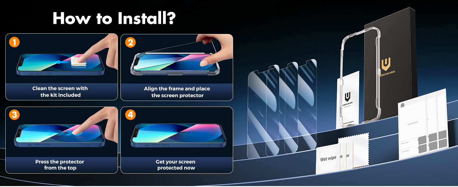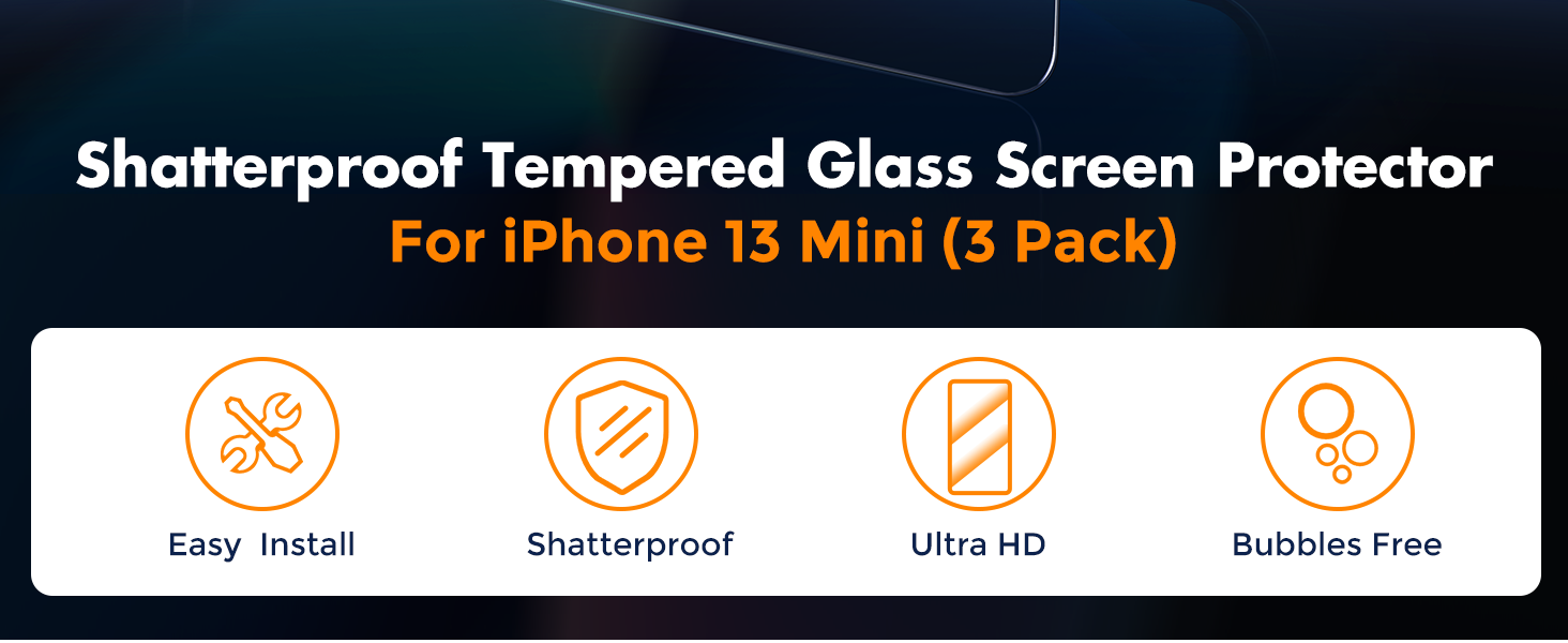 | Whats in the box | 3 x iPhone 13 Mini tempered glass screen protector;1x Manual;1x Dry Cleaning Wipe;3x Alcohol Pads;3x Screen Protector;1x Installation Frame;2x Dust Absorber Sticker; 3x Static Removal Stick; |