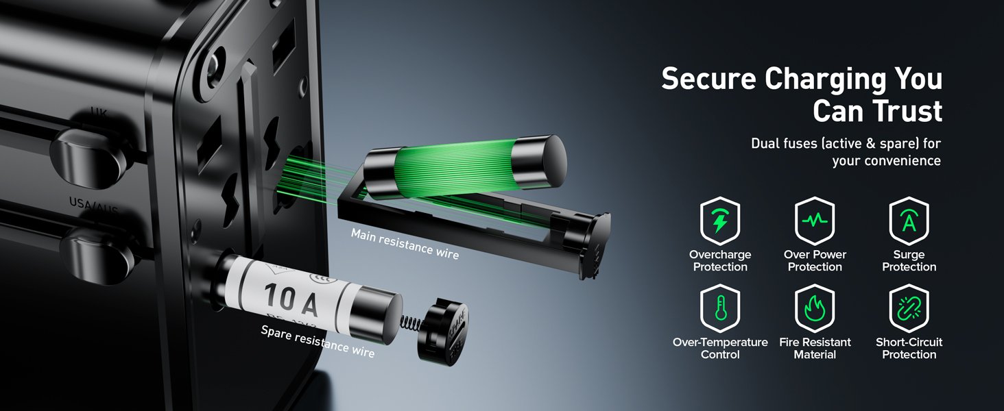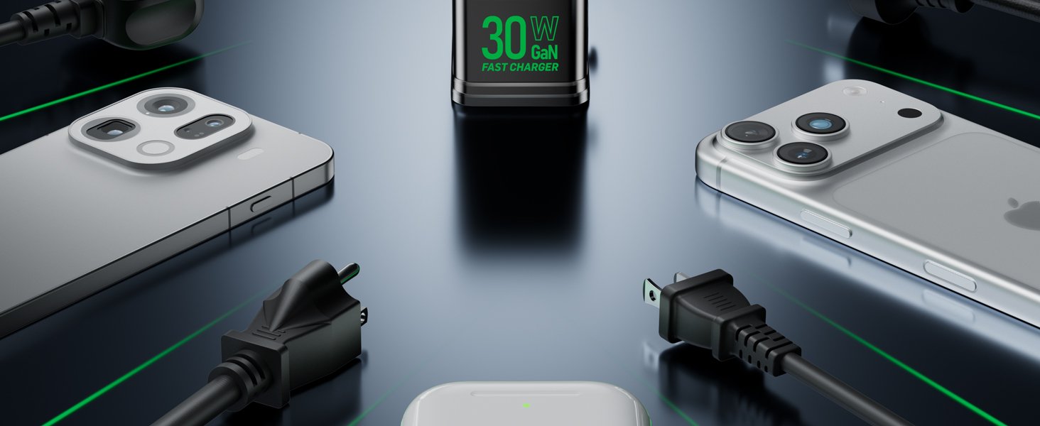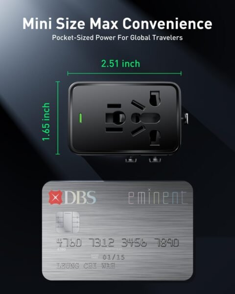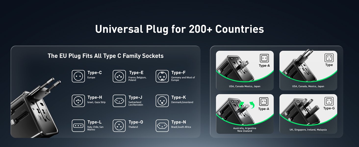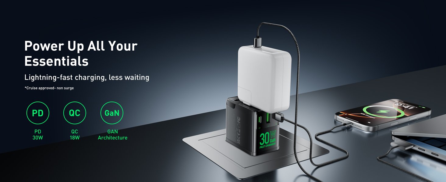 Universal Travel Adapter, 30W GaN Fast Charging International Power Adapter Worldwide Charger with 4 Ports 1 AC, 1 USB-A, and 2 USB-C Ports Plug Adapter for USA European UK AUS Japan
