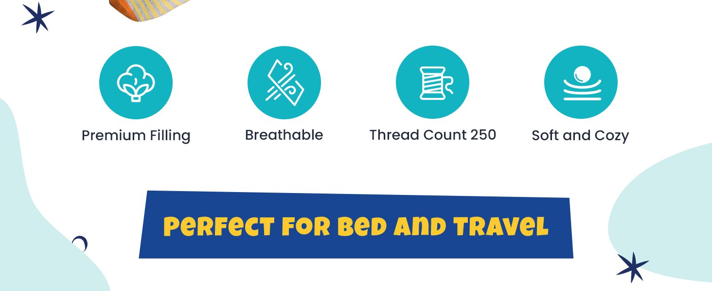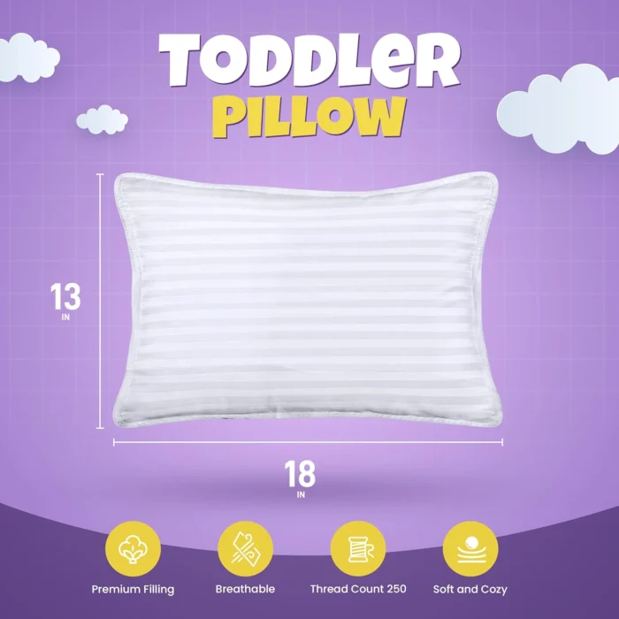 Polycotton Toddler Pillow Pack – Pack of 2 toddler pillows made with the perfect blend of softness and firmness to ensure a perfect night’s sleep for your toddler (Intended for age 2 and up) Dimensions – The toddler pillow measures 13 by 18 inches Durable – 250 Thread Count, Cotton blend Cover; making the pillow durable! Pair Pack – Comes in pair packaging for a complete outlook for your toddler’s bed Care Instructions – It is recommended to spot clean the pillow or hand wash the fabric %$#
