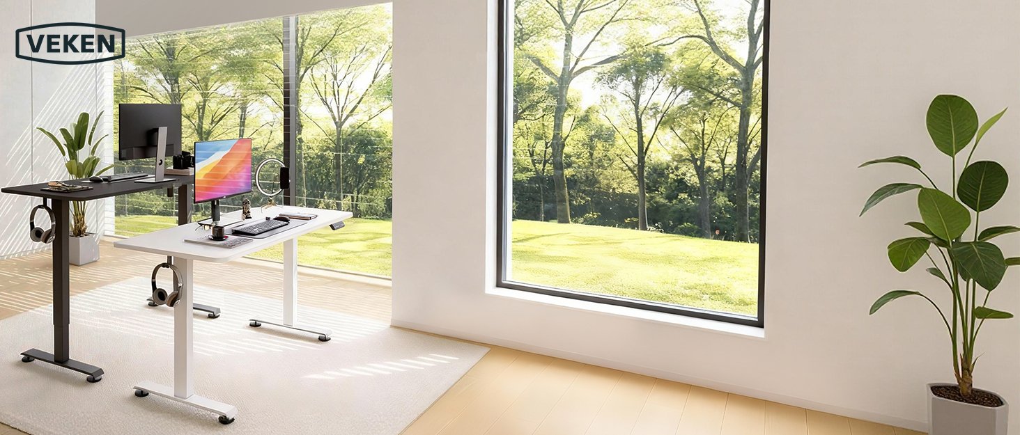 Elevate Your Workspace: Enjoy effortless height adjustment from 28.3″ to 46.5″ to seamlessly transition between sitting and standing throughout your day; Kindly Note that the desktop is divided into 2 pieces, not a whole piece Effortless Assembly: Pre-drilled holes and clearly labeled parts, coupled with a detailed instruction manual, make assembly quick and straightforward Tangle-Free Zone: Integrated cable management with a convenient cable clip keeps cords organized and off the floor, promoting a clean and clutter-free workspace Personalized Comfort: Equipped with multiple customizable memory presets, you can save your ideal height for easy adjustment and a personalized comfort experience. Invest in Your Well-being: With its sleek design and ergonomic features, this desk helps you create a comfortable and healthy home office environment, boosting productivity and focus %$#