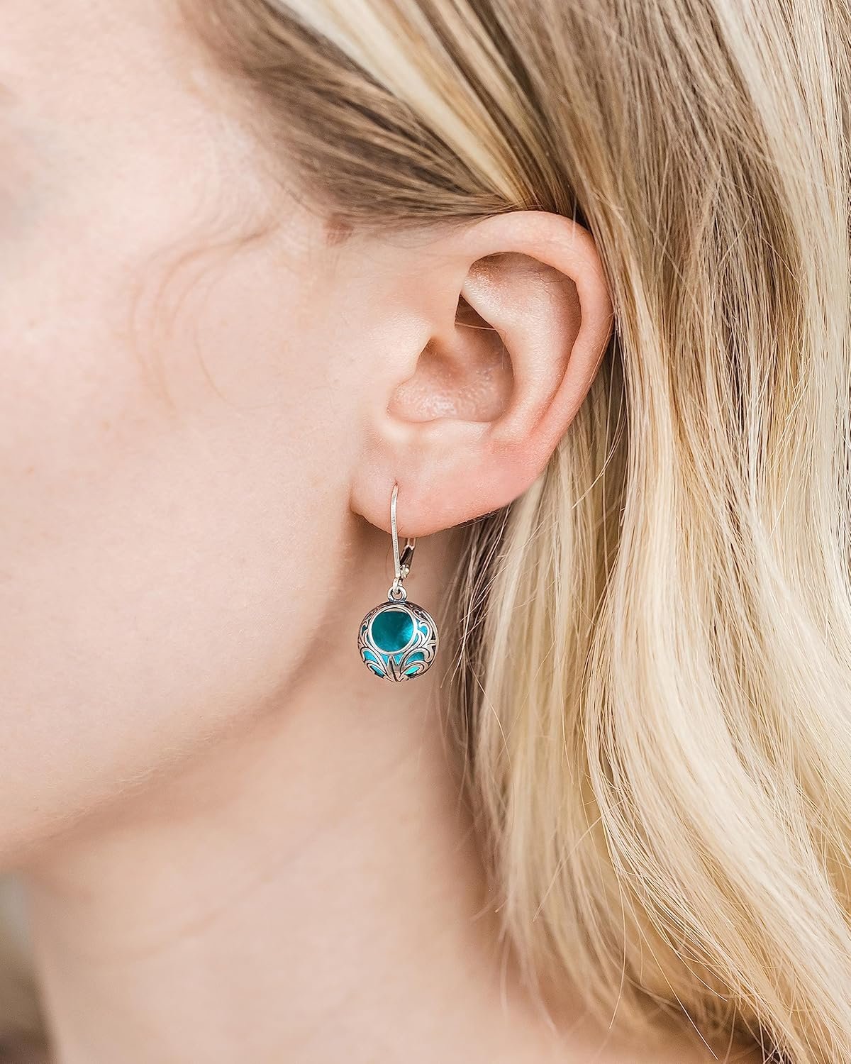 Review: Bottled Up Designs creates truly beautiful earrings from abandoned glass products. The color of my earrings is a dark turquoise, the lever-backed earrings are sturdy but discrete, so there is no concern about losing one. The glass is contained within a very pretty and ornate filagree casing. Not only will I be purchasing additional earrings from this company, but will certainly consider ordering some for gifts. They came in a pretty box, too.