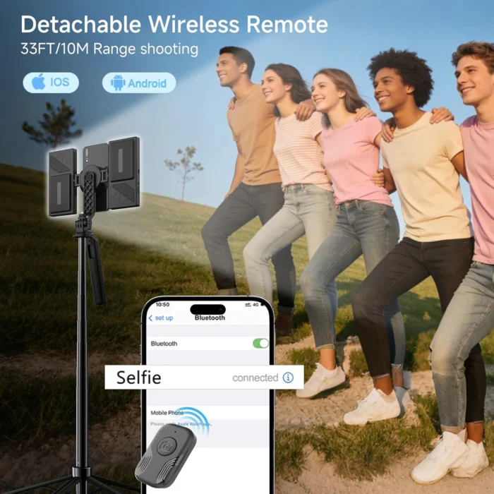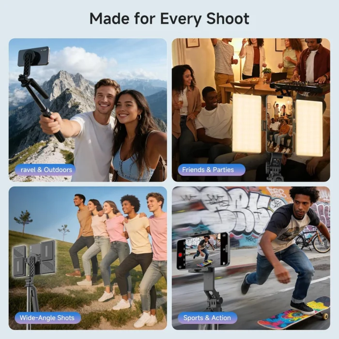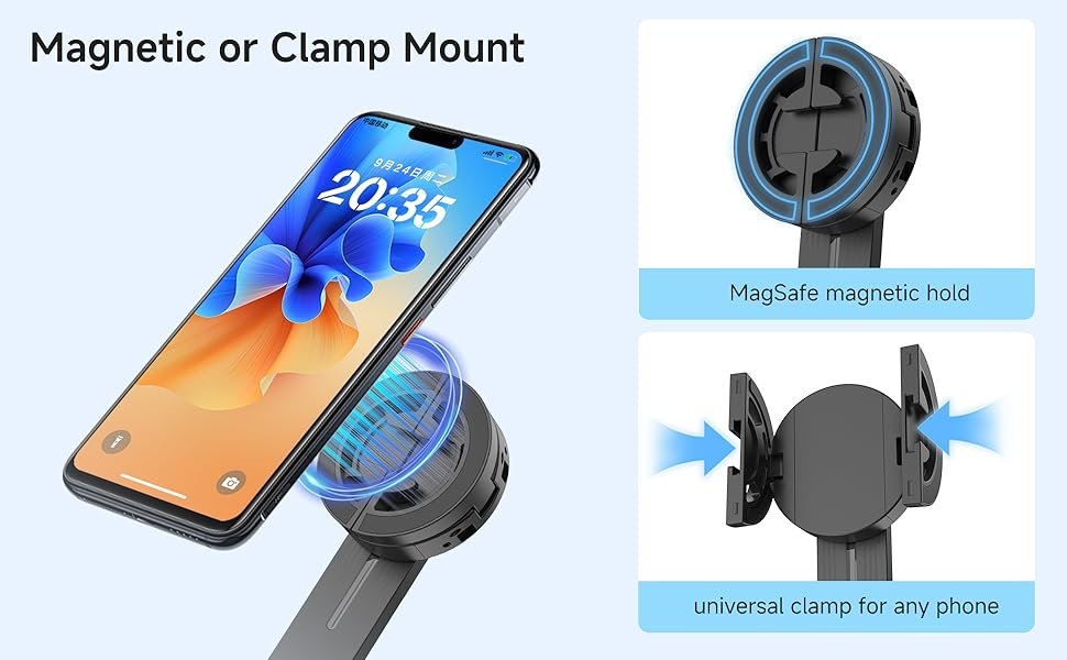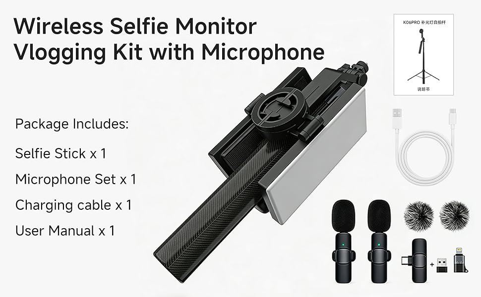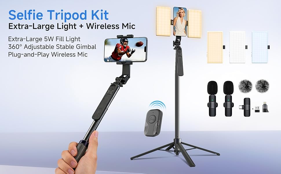 Vlogging Kit for iPhone/Android, 67” Selfie Stick Tripod with CRI95 Fill Light (2900-7000K) and 2500mAh Battery, Wireless Mic & Remote, MagSafe for iPhone 12+, Clamp for Android, TikTok/YouTube Live