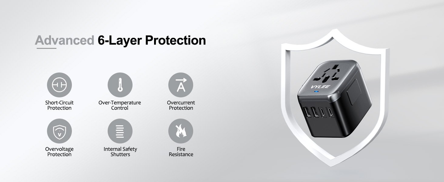Safety Protection: Universal power adapter has built-in 8A fuse to effectively prevent overcharging and short circuit, with FCC, CE and RoHS certified safety system, adjust the correct current output and automatically boost the charging speed, the port automatically adapts to the output of each device, our built-in safety shutter will also protect your electronics from harm