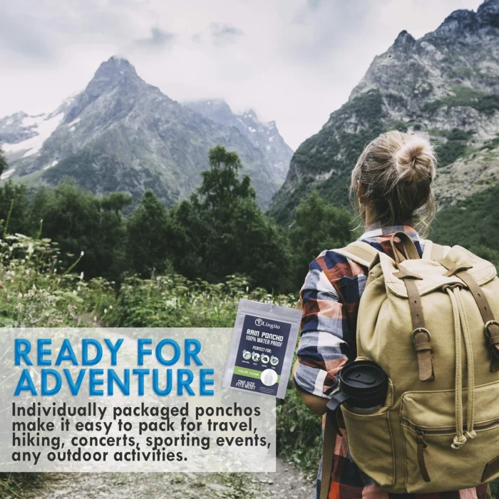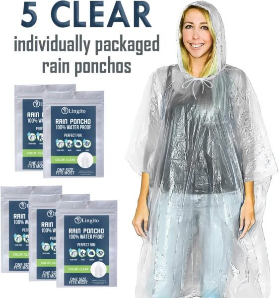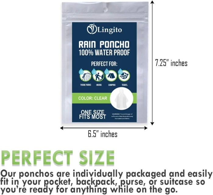 Lingito Clear Emergency Rain Ponchos Adults, Thicker, 100% Waterproof Emergency Camping Rain Poncho, Amusement Parks, Hikes