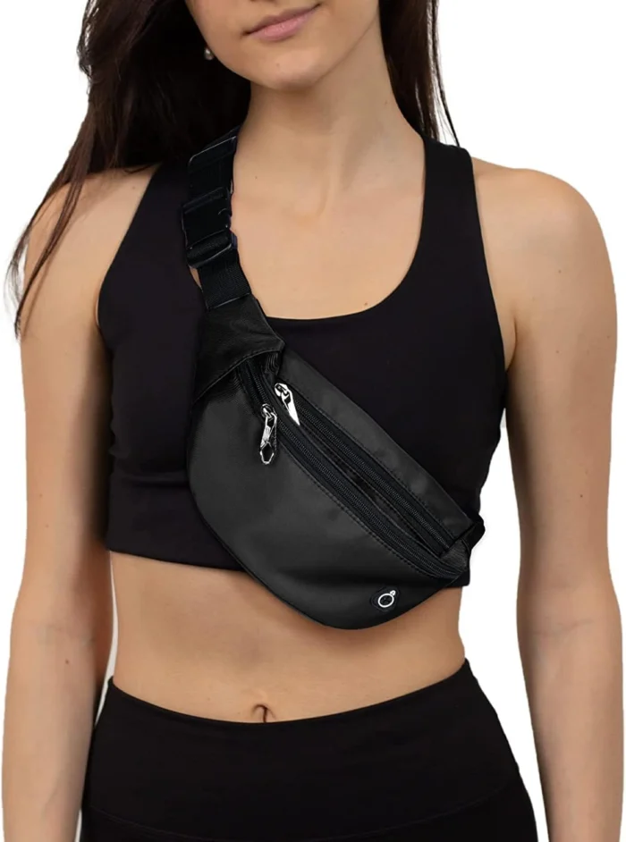 Review: This fanny pack fits perfectly. Zips and unzips effortlessly. It fits essentials and is water resistant. Great for hikes, day trips at amusement parks. The material is soft and pliable and rests nicely on your waist.