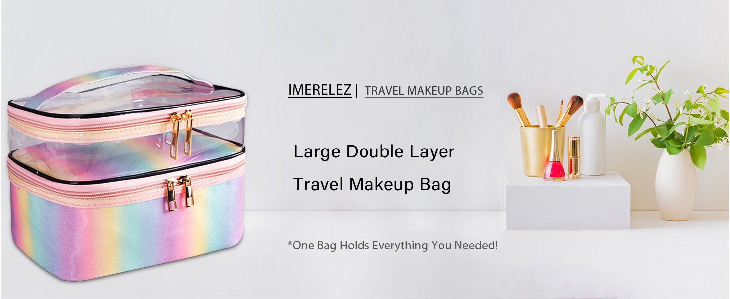 【WATERPROOF & Sturdy】The high-quality PVC material used on the top layer is waterproof, easy to clean and also sturdy! This waterproof makeup bag prevent unexpected leakage,dust and moisture. Bottom part of this cosmetics bag, PU VEGAN LEATHER and NYLON FABRIC is used to reinforce water resistance and durability. Different from other products, imerelez cosmetic bags have been improved and upgraded from details.