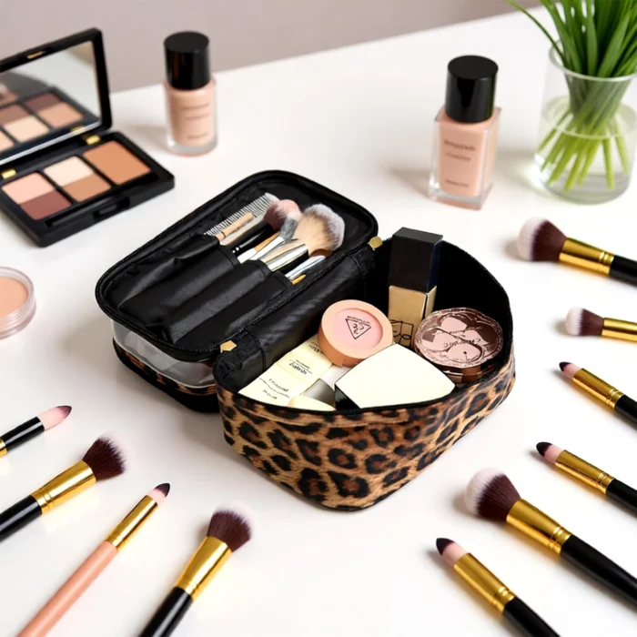 @#@ Double-layer Cosmetic Bag Makeup Bag Travel Makeup Bag Makeup Bags for Women Cosmetics Cases Portable Waterproof Foldable (Leopard) @@@
