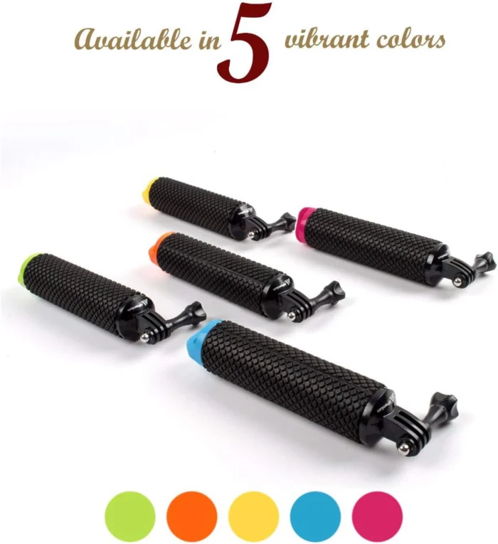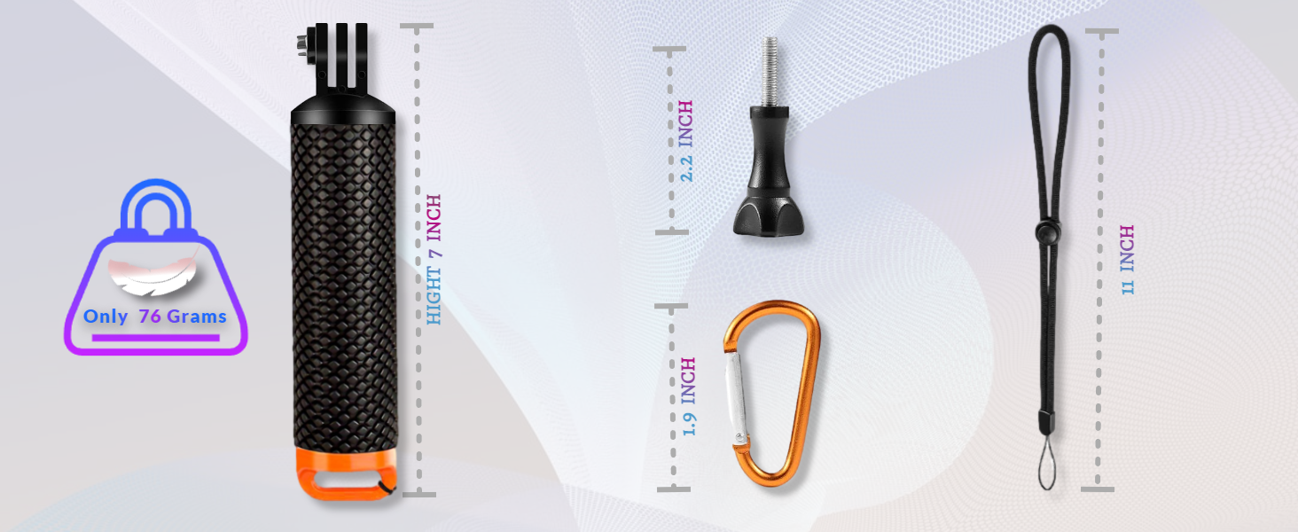 Textured EVA non-slip grip handle for tight grip: The design of the stick factors for the wet condition that the grip will be used in. The high quality non-slip foam handle delivers tight grip and extra comfort. The grip used as a camera stabilizer provides easy aiming and allows you to capture a variety of angles with increased stability and control. This pocket-size portable & lightweight hand grip is 7 inches tall and only weighs under 80 grams. A great addition to your GoPro accessories.