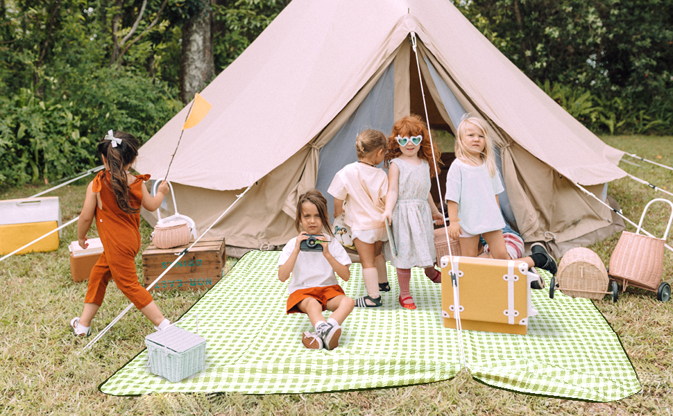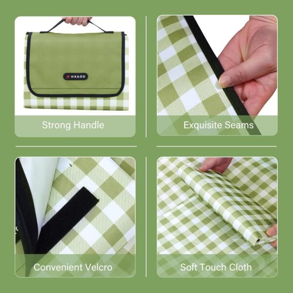 HX&OD Picnic Blanket Outdoor Extra Large Picnic Mat 80″X60″ Camping Blanket Beach Blanket Foldable Waterproof Sand Mat Hiking Travel Family Concerts(Green)