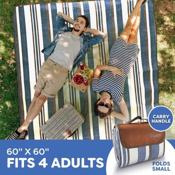 scuddles Extra Large Picnic Blanket – 60″ x 60″ Waterproof Outdoor Mat with Soft Dual-Layer Comfort, Foldable Travel Rug for Beach, Camping, Lawn, Parks & Family Picnics