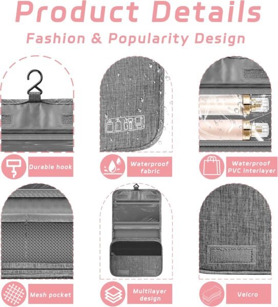 Review: I purchased this toiletry bag specifically for my hospital stay for the birth of my baby, and it turned out to be exactly what I needed. The size is perfect for keeping essentials organized without being bulky, and the hanging hook is a lifesaver in small or shared bathrooms. I loved being able to hang it up and have everything visible and within reach.The material feels durable, waterproof, and easy to clean—ideal for travel or hospital stays where spills can happen. It’s lightweight yet has plenty of compartments to separate toiletries, makeup, and personal items. The zippers glide smoothly, and the beige color gives it a clean, modern look.This bag has already proven to be super functional, and I know I’ll continue using it for trips and vacations. Absolutely worth the price and highly recommended if you want a portable, well-designed travel organizer!