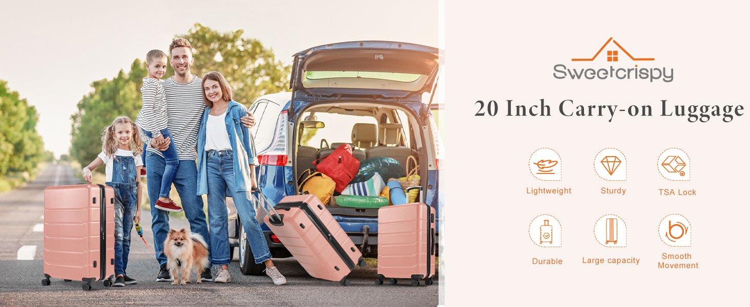 【Smooth & Easy Mobility】Sweetcrispy carry on luggage features a dual-wheel design for effortless movement, ensuring a smooth and pleasant travel experience. 【Spacious Storage Space】With spacious and practical storage, wet and dry mesh areas, X securing straps and expandable storage capacity, this suitcases with wheels offers optimal organization and versatility, designed to meet all your travel needs. The premium zipper closure system gives you peace of mind and convenience when traveling. 【Lightweight & Durable】Crafted with ABS exterior material, this checked luggage is not only lightweight for easy handling, but also incredibly sturdy to withstand the rigors of travel. 【Enhanced Security with TSA Lock】Protect your belongings with the built-in TSA lock, providing peace of mind during both domestic and international trips. 【Flexible and Resilient Telescopic Handle】The retractable handle of this travel luggage is not only durable, but also offers flexibility, allowing you to easily adjust it according to your preferred height while maintaining its excellent performance. %$#