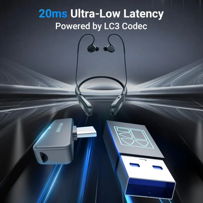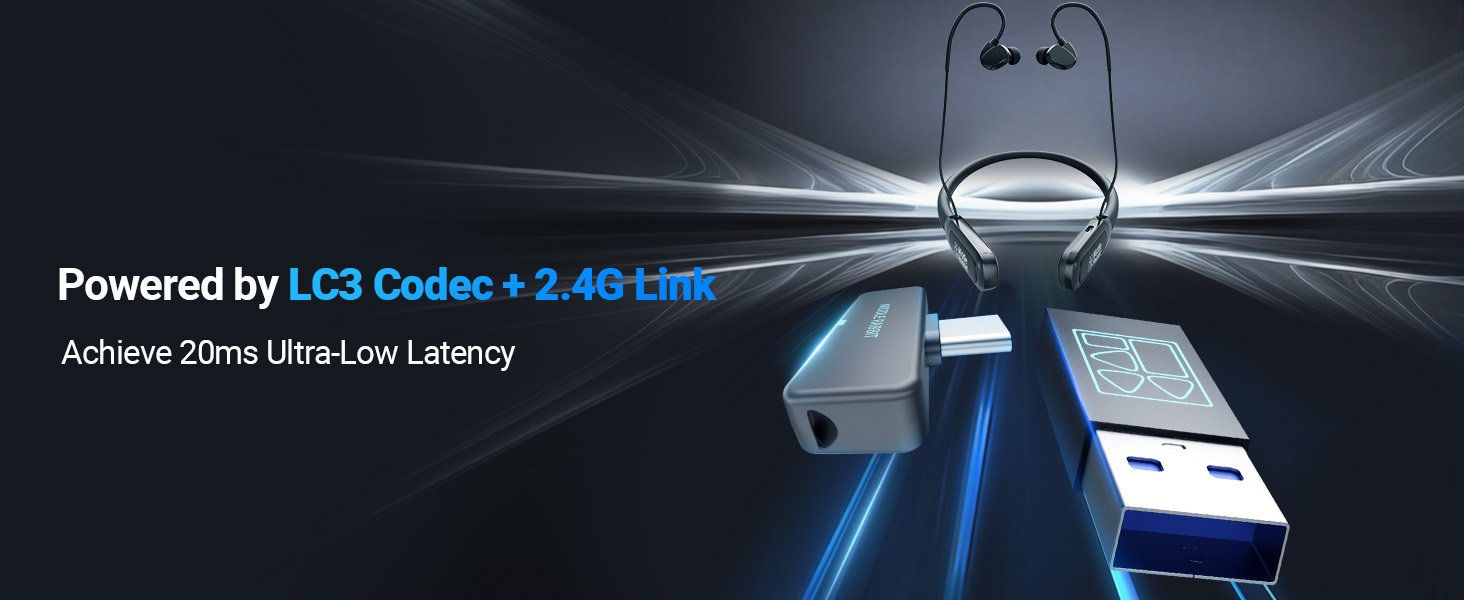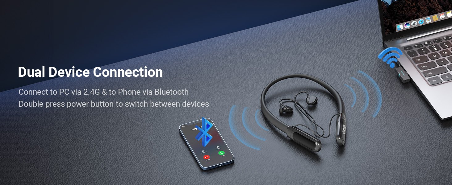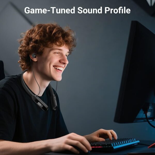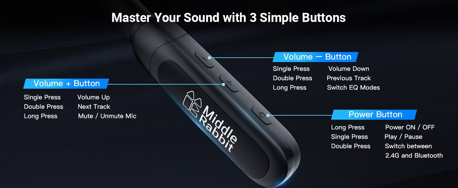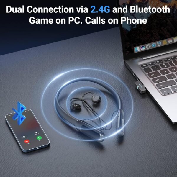 Middle Rabbit Rampage 2 Gaming Earbuds with 2.4G USB Dongle, 20ms Low Latency, Wireless Bluetooth Neckband Headphones for Work & Play, Mic, 32H Playtime, Around-The-Neck, for PS5/PC/Laptop