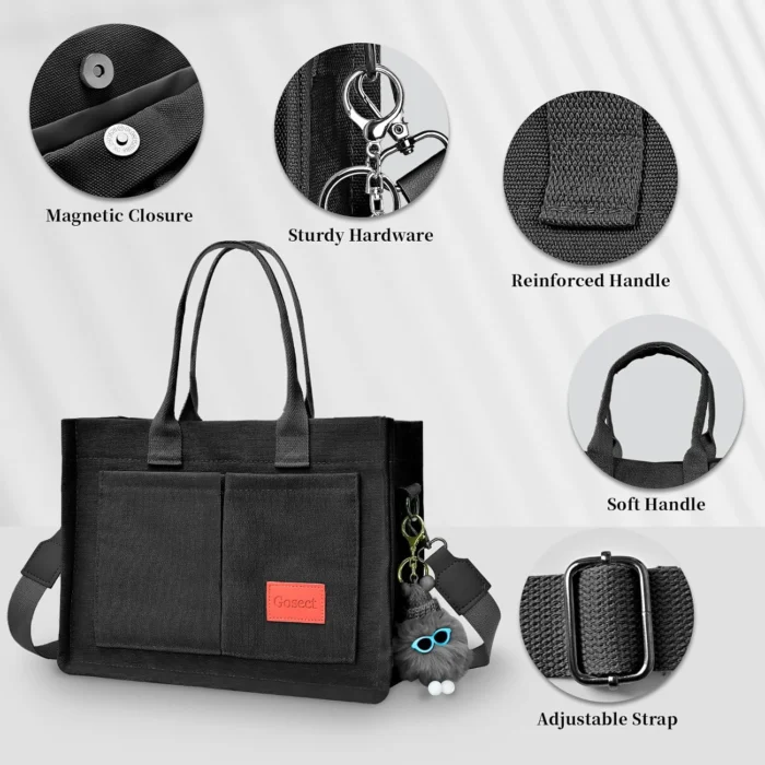 Canvas Tote Bag with Multi Pockets. Large capacity, enough for daily necessities, work and study and other uses