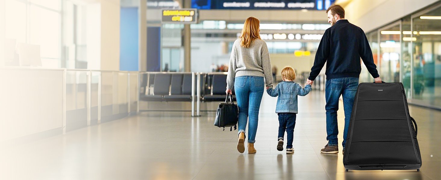 The travel stroller bag with wheels lets you effortlessly navigate your car seat through busy airports and train stations while reducing your carry-on burden